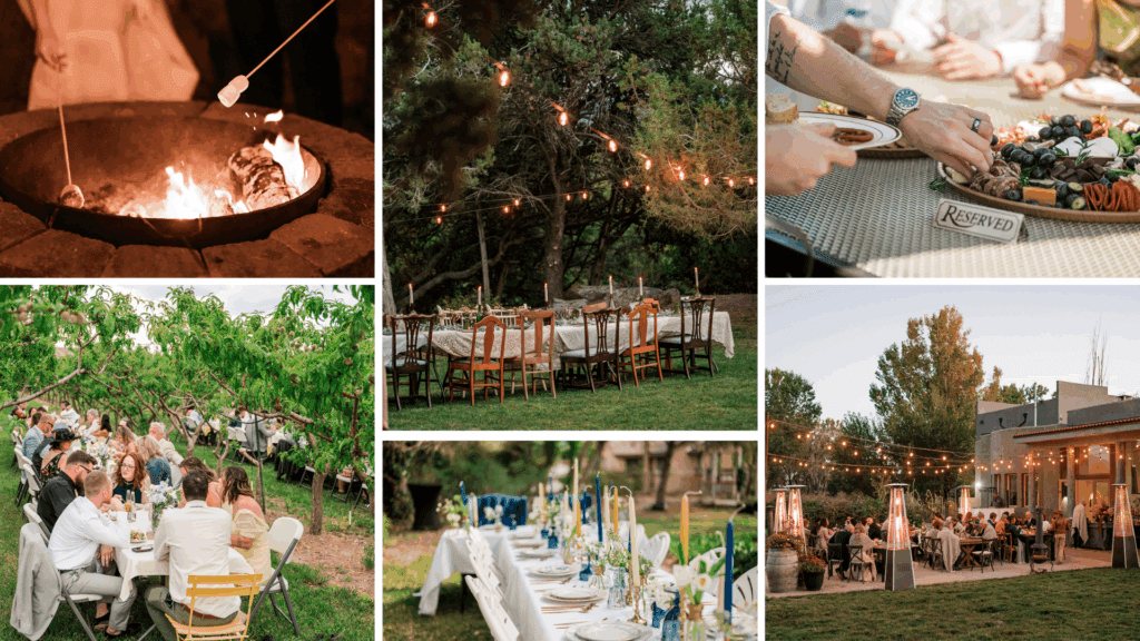 Maybe you start with traditional cake cutting and parent dances, but instead of a full dance floor reception, you transition to game stations, a bonfire, or a movie screening. Or you do all the traditional photos and formal elements, then surprise everyone by bringing in food trucks and turning the reception into a festival.