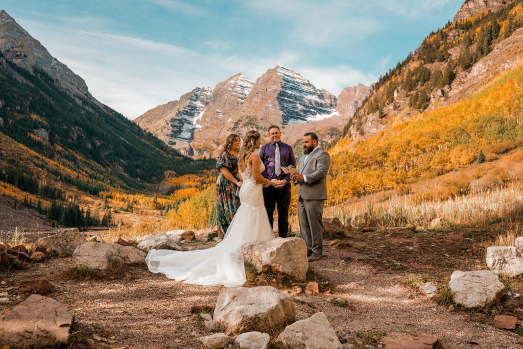 Since you want to be open to several dates when getting married at Maroon Bells, it’s a good idea to first decide what time of year you want to get married there. There are certainly more popular times to get married than others, but there’s no wrong answer to the best time to get married there. There are, however, busier times of the year that make it harder to get a reservation. As of writing this, the website states, “Due to being situated at a very busy location, events are not reservable on Fridays or Saturdays in June, July or August and Fridays, Saturdays or Sundays in September and the first week of October at the Maroon Bells Amphitheater.”