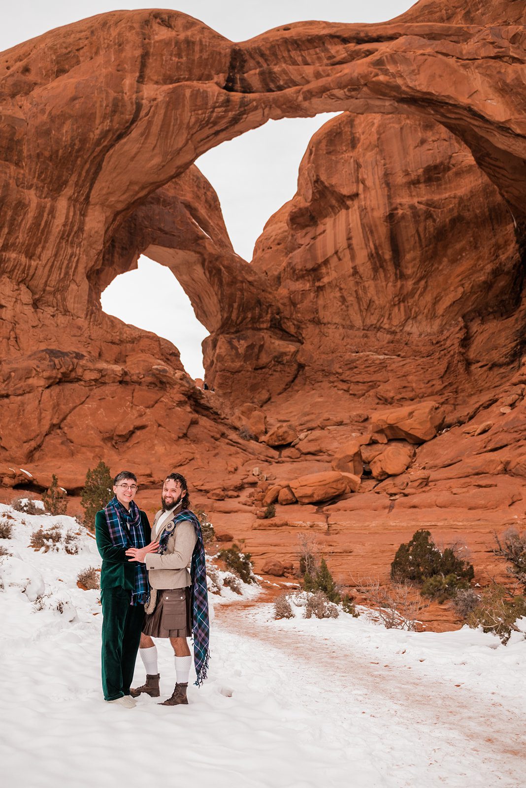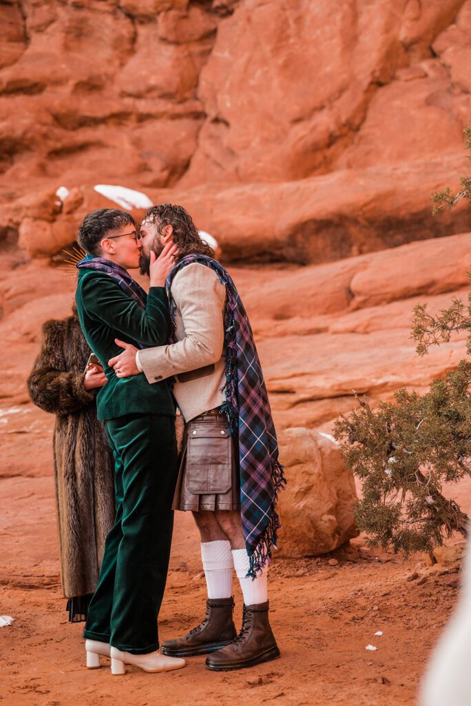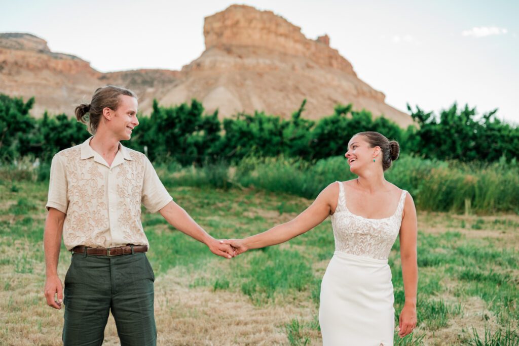 You want to be comfortable and move freely. This is especially true for adventure elopements or outdoor weddings in Colorado and Moab. If you’re hiking to your ceremony location, scrambling over red rocks, or spending your day exploring, you need attire that works with your plans, not against them.