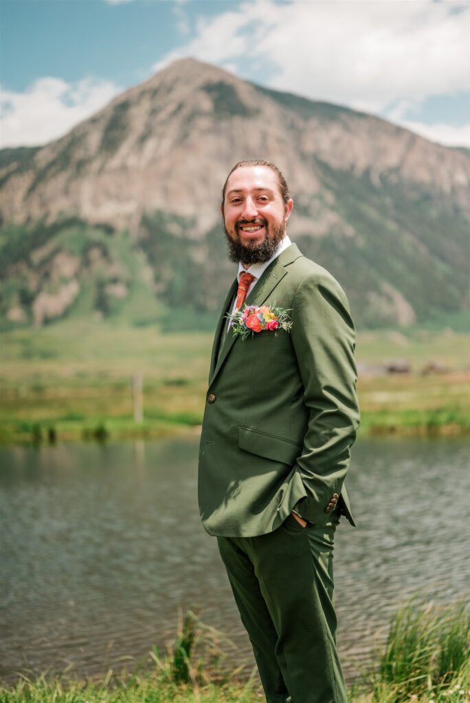 Real couple example: I’ve photographed grooms in burgundy suits against fall foliage, sage green suits in mountain meadows, and tan linen suits in Moab’s desert landscapes. The color coordination with the environment creates stunning, cohesive photos.
