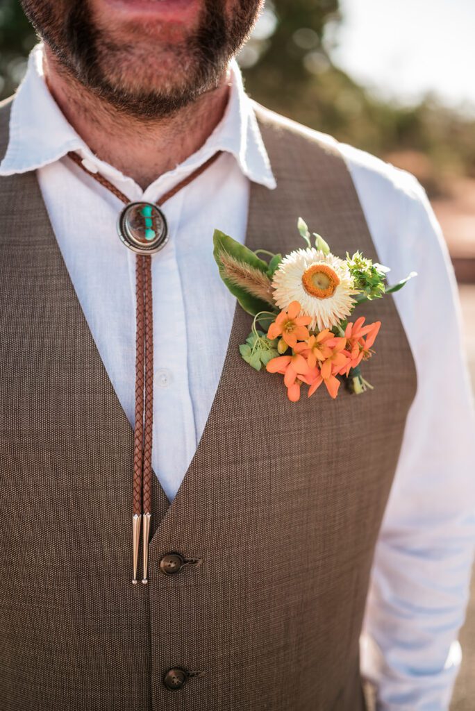 Styling tip: Pair with dress pants, add suspenders for extra style, and choose a vest in a complementary color to your partner’s attire. This look works beautifully for rustic, barn, or outdoor weddings.