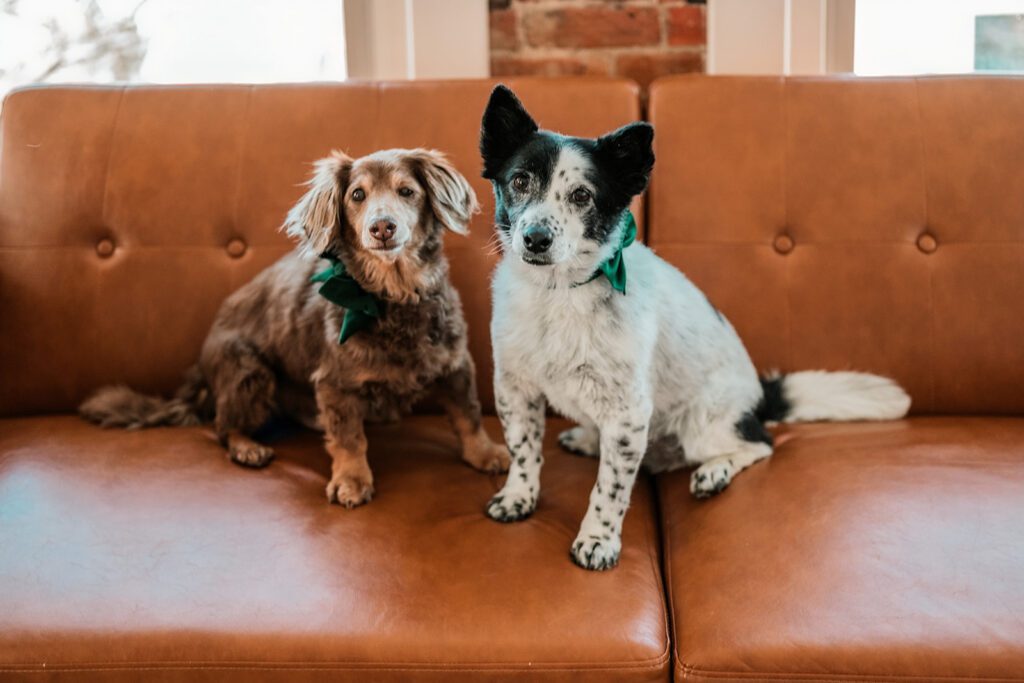Important note: The space works great for mini sessions (30-60 minutes). For longer sessions, plan to take your dogs outside for bathroom breaks. We kept Moose and Stevie’s session efficient and comfortable, which at 17 years old, Moose especially appreciated. Pets, like children, don’t have very long attention spans anyway!