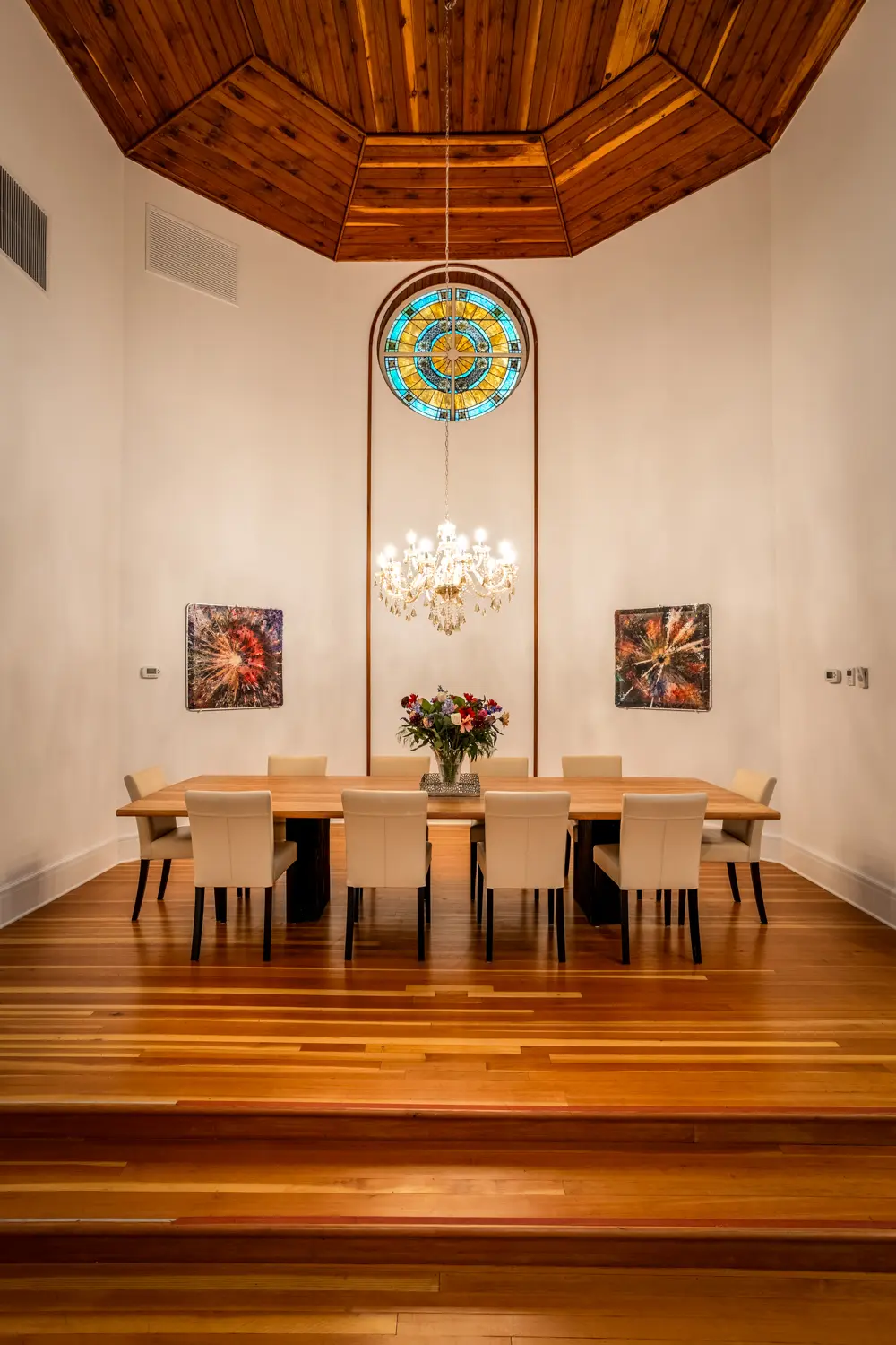 Located in downtown Fruita, Our Lady of Perpetual Motion is a unique lodging option that also acts as a small wedding venue for micro weddings and elopements with a few guests! Created from a historic church building, this space maintains the church/cathedral vibes throughout, from stained glass windows to chandeliers and arched doorways. “This registered Colorado historic property is a sandstone pillar of the local community, now a private residence and one of the most unique vacation rentals you’ll ever have the chance to experience.”